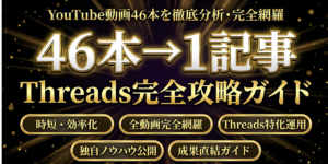 【46本のソースを完全分析】Threads副業の稼ぎ方を全部まとめました|バズる投稿テンプレ13種+AIプロンプト50個+30日ロードマップ付き