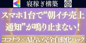 【寝稼ぎ構築】スマホ1台で“朝イチ売上通知”が鳴り止まない!ココナラ×AI占い完全自動化パック